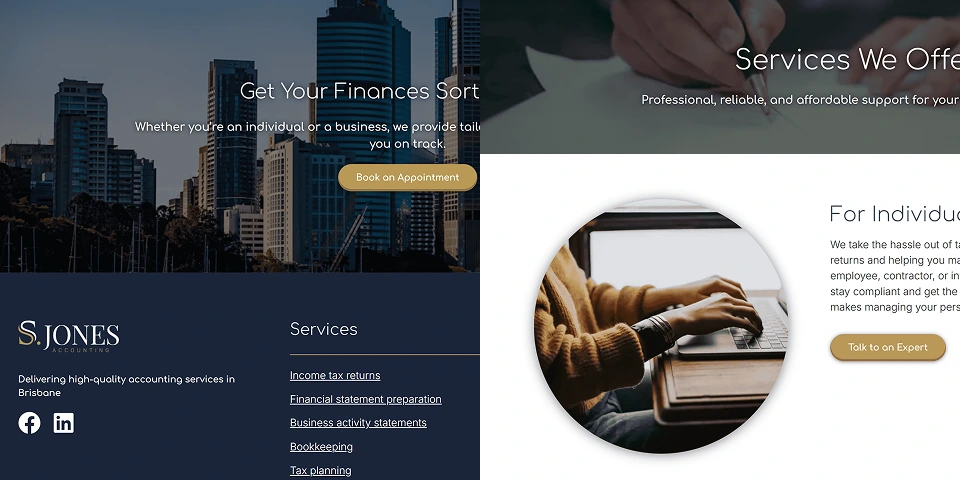 Full website design and development for S Jones Accounting, experts in business advisory and tax compliance.